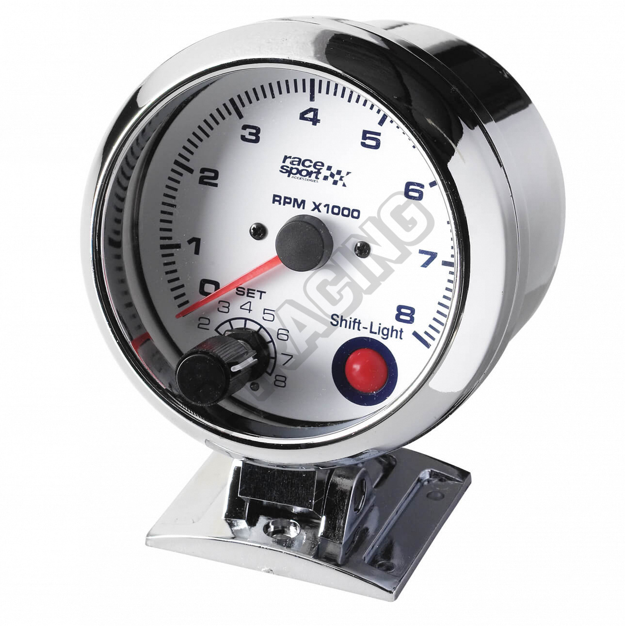 Přídavný otáčkoměr Race Sport 90 mm 0-8000 RPM - nastavitelný shift, bílý - AKCE, CENA PLATÍ JEN DO VYPRODÁNI STÁVAJÍCÍCH ZÁSOB