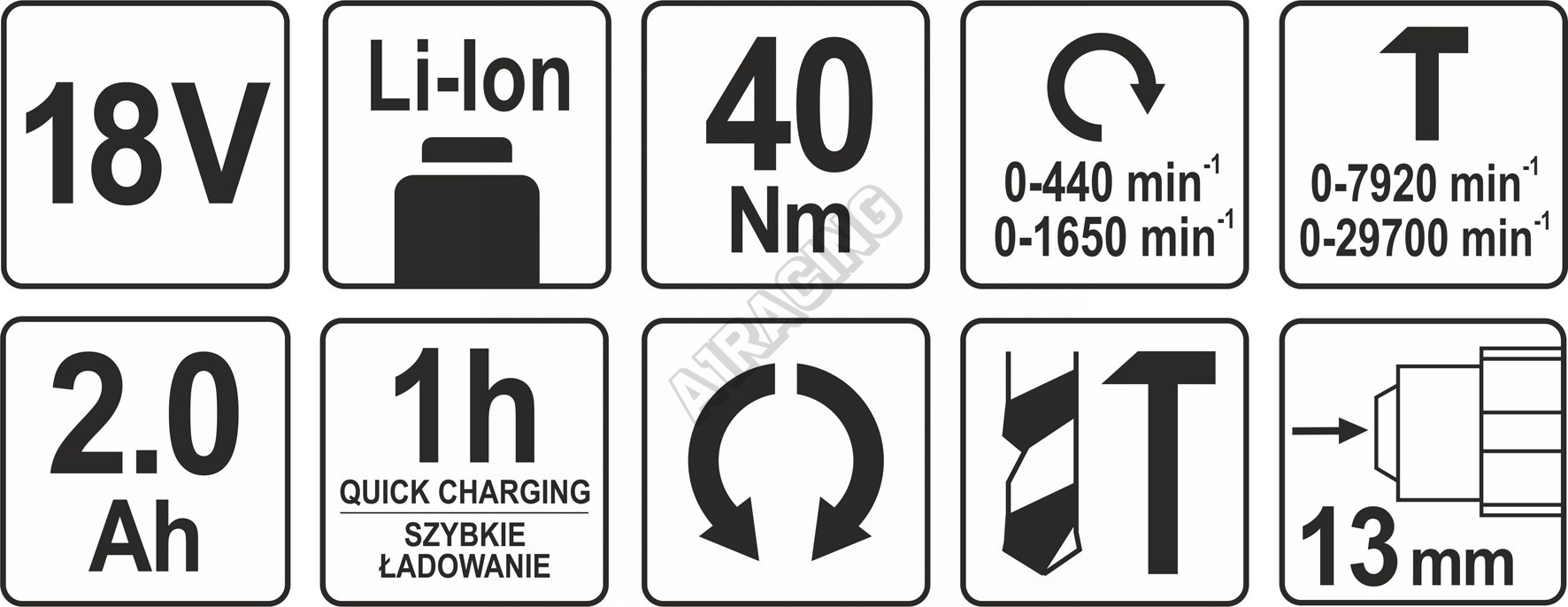 Příklepová AKU vrtačka YATO o síle 18V (max. otáček 1650 za minutu) s vysoce kvalitním pohonem.