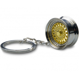Luxusní a stylový přívěsek na klíče v podobě litého kola se zlatým středem a chromovým límcem.