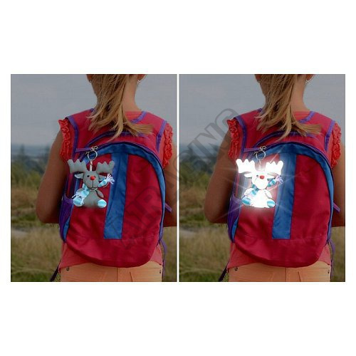 Reflexní přívěšek ve tvaru plyšáka. Povrch je vysoce reflexní, jedná se o totožný materiál, ze kterého jsou vyrobeny pruhy u reflexních vest.