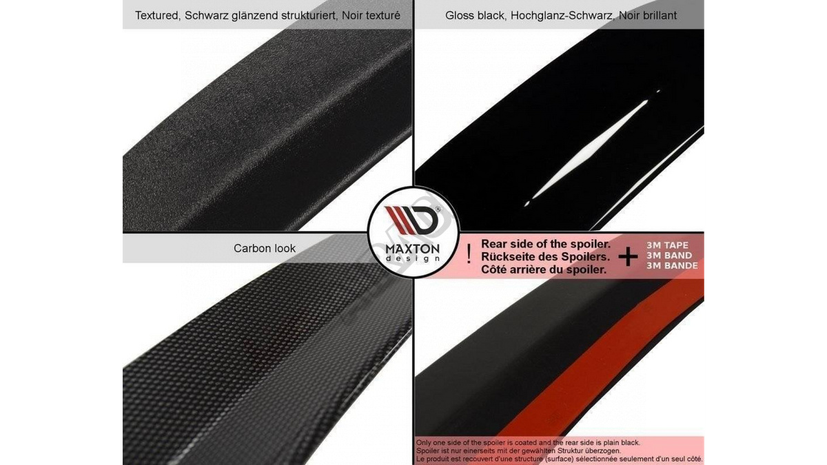 - Kryt na spoiler je k dispozici ve 2 typech struktury: lesk, imitace karbonu