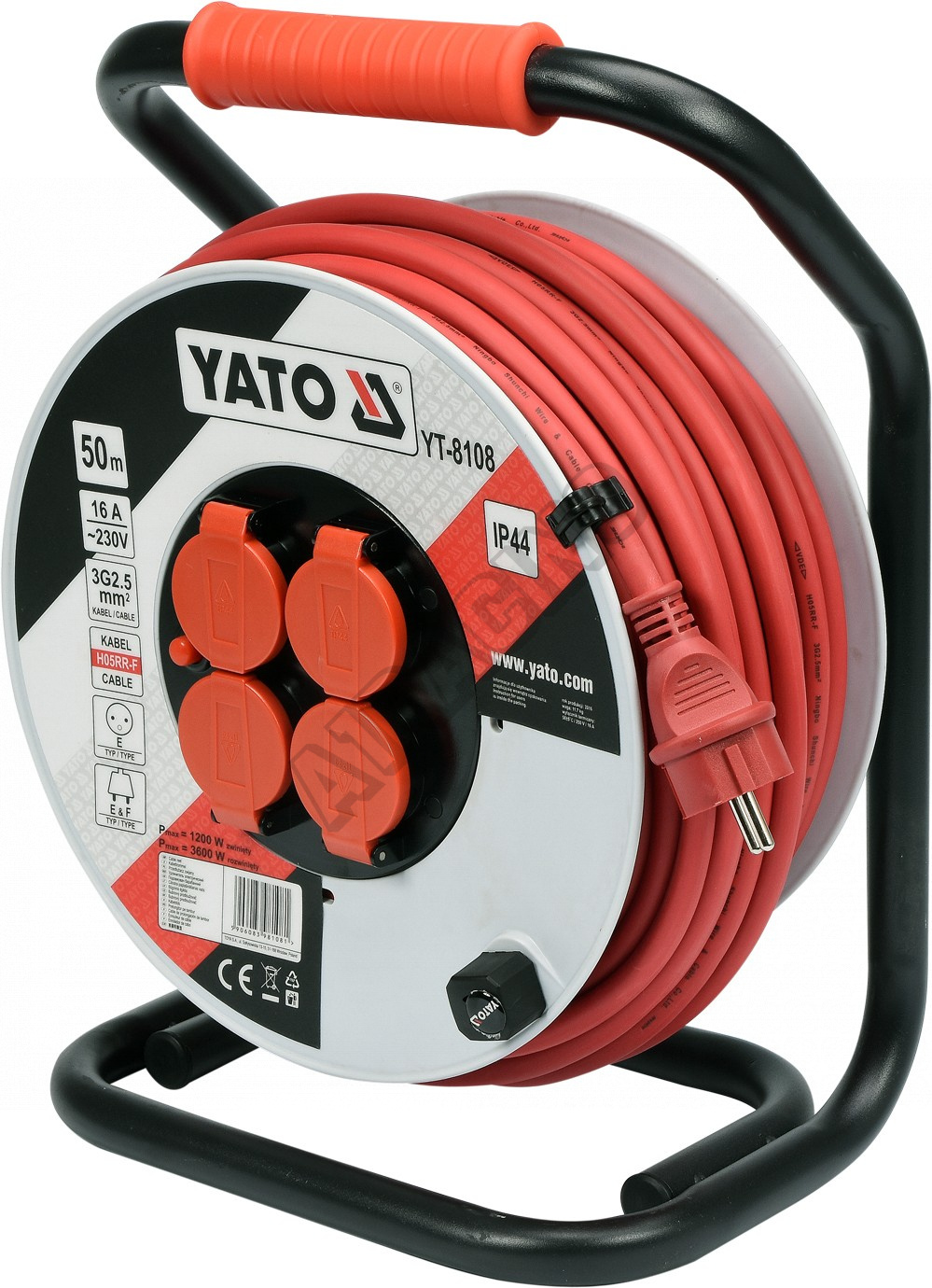 Prodlužovací buben 4-zásuvkový s 50 m prodlužovacím kabelem.