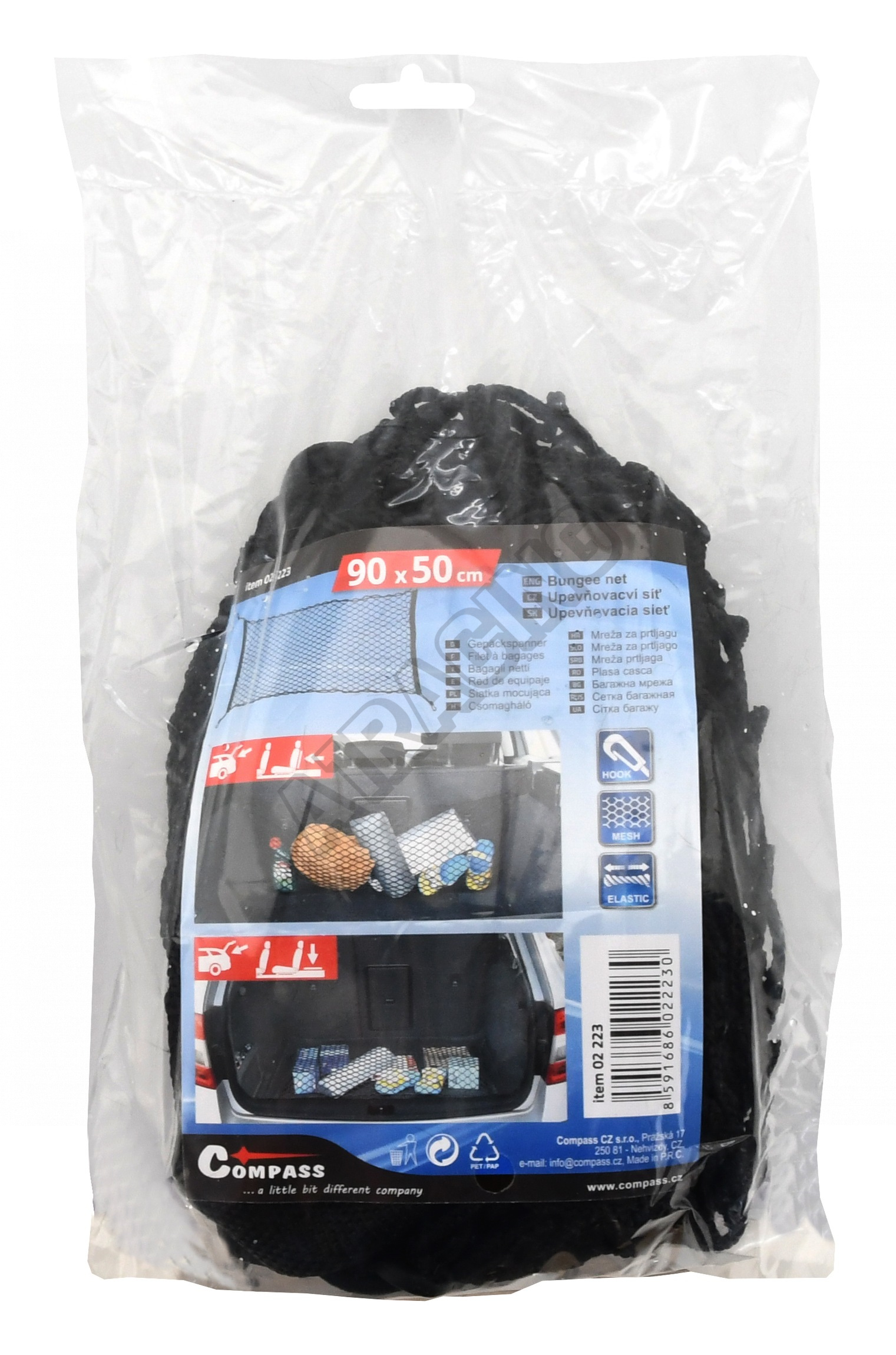 Pružná upevňovací síť do interieru vozu, velikost 50 x 90 cm, vhodná pro snadné zajištění zavazadel,