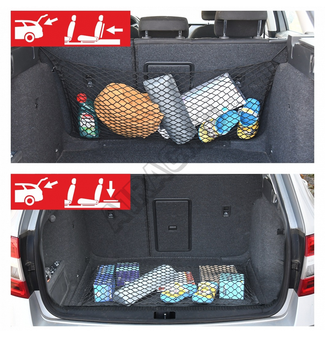 Ideální k připevnění předmětů na dno zavazadlového prostoru, případně na zadní stranu zadních sedadel osobního automobilu.