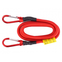 Pružný masisivní upínač vysoké kvality. Zakončeno háky s držáky pro lepší napnutí. Délka 120 cm, průměr 10 mm. Uchycení na zacvakávací karabiny.