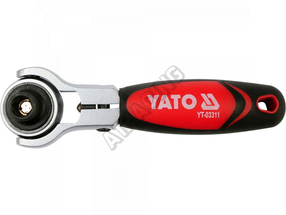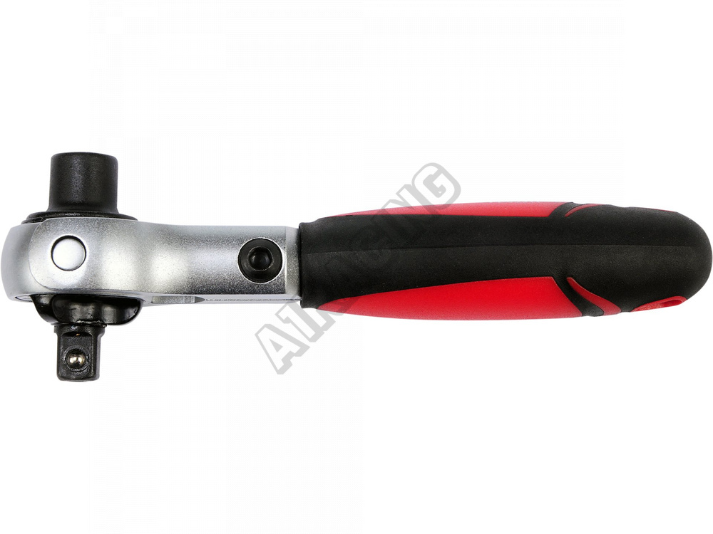 Ráčna kombinovaná s otočnou hlavicí pro bity a nástrčné klíče s plastovou rukojetí potaženou TPR 1/4"(6,3mm) s přepínací páčkou, délka 115 mm, ráčnový mechanismus s 72 zubu, vyroben z kvalitní chromvanadiové slitiny oceli CrV6140 splňující normou DIN3122.