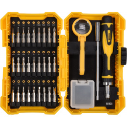 Nářadí je precizně zpracováno z CrV oceli a jednotlivé nástavce 5/32"(4 mm) jsou magnetické, čímž usnadňují práci se součástkami. Šroubovák s ráčnovým mechanismem je opatřen pojistkou, bránící vypadnutí nástroje. V sadě se dále nachází krabička pro ukládání drobných součástek a nástroj složený z držáku a lupy, pro lehké a rychlé zkoumání drobných součástí a jejich případných vad.