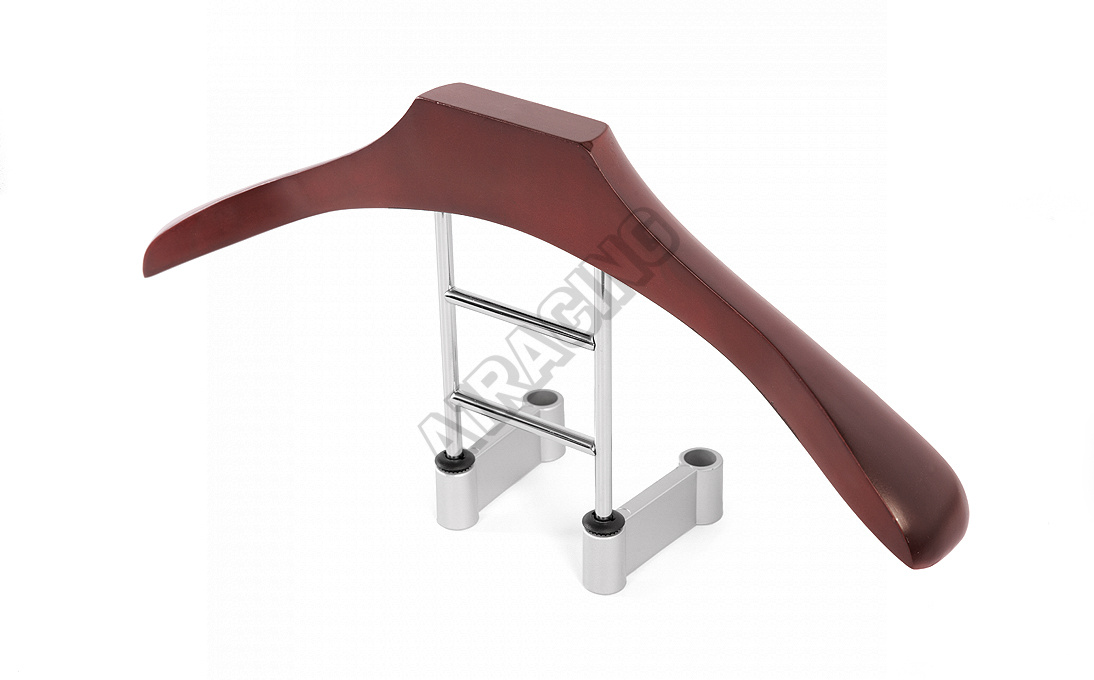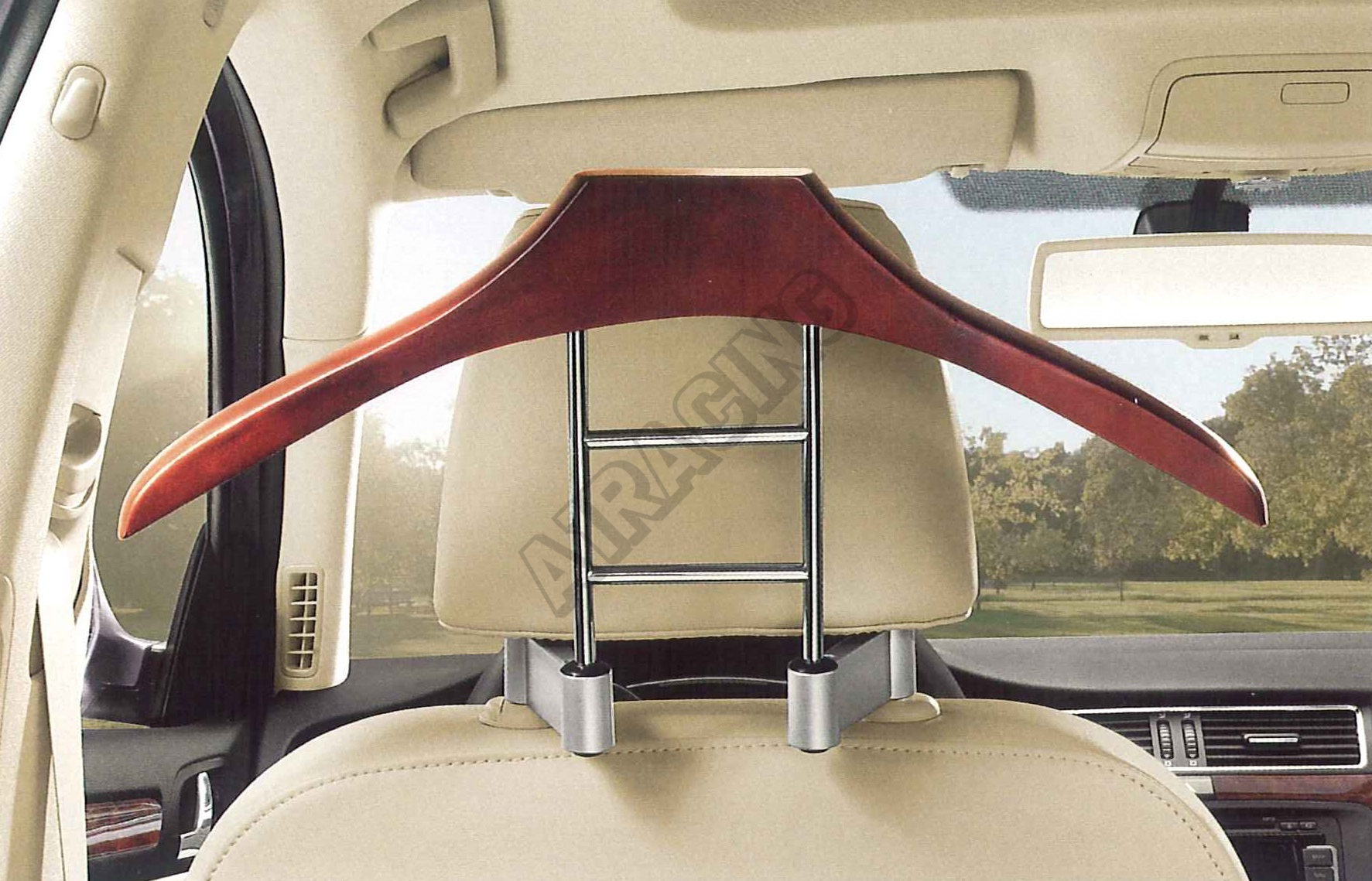 Originál ramínko na oblečení. Design nerezové oceli a masivního lakovaného dřeva. Uchycení na opěrku hlavny u předního sedadla.