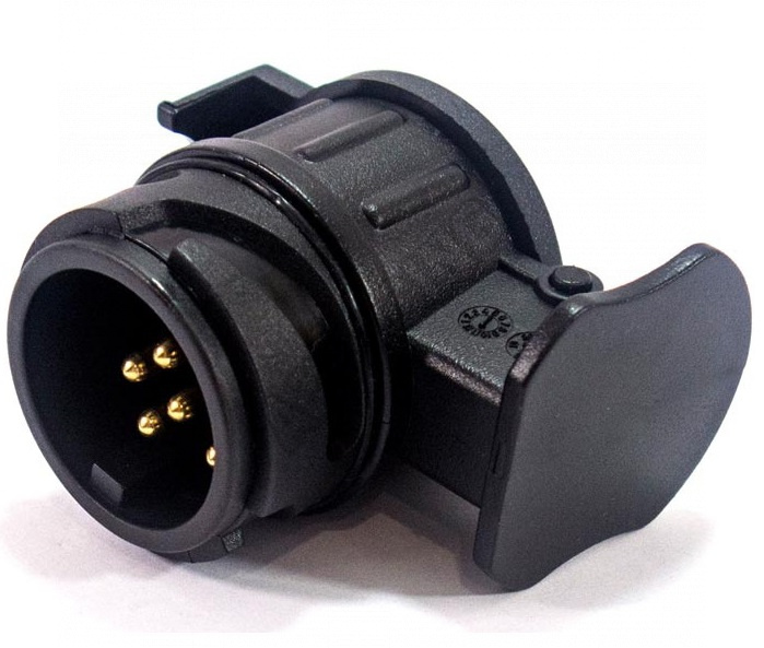 Plastový adaptér (redukce), který umožňuje zapojení elektroinstalace vozidla s přívěsným vozidlem, pokud mají rozdílné konektory.