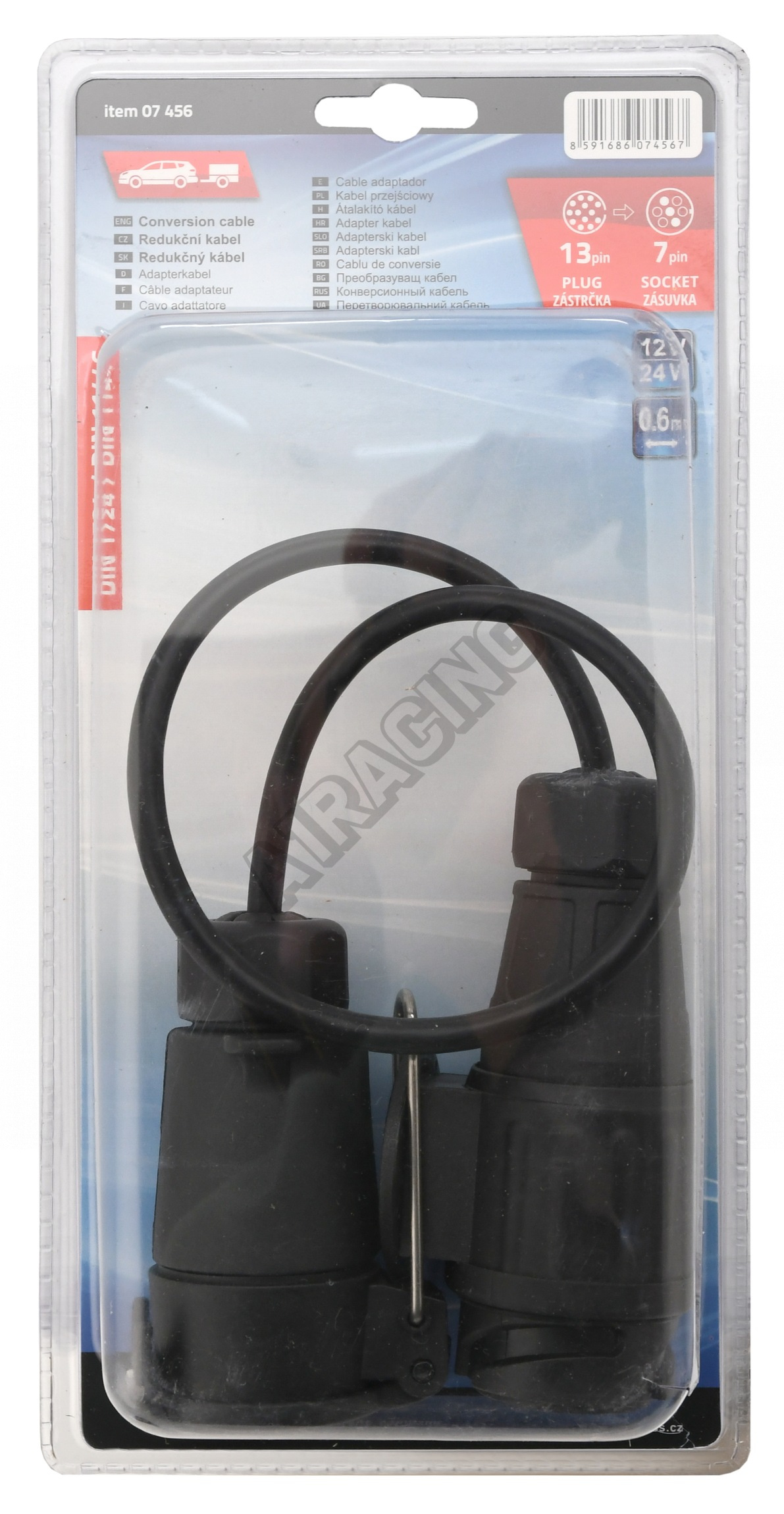Určeno pro vozidlo s 13-ti pólovou zásuvkou (dle DIN 11446) a přívěs se 7-mi pólovou zástrčkou (dle DIN 1724).