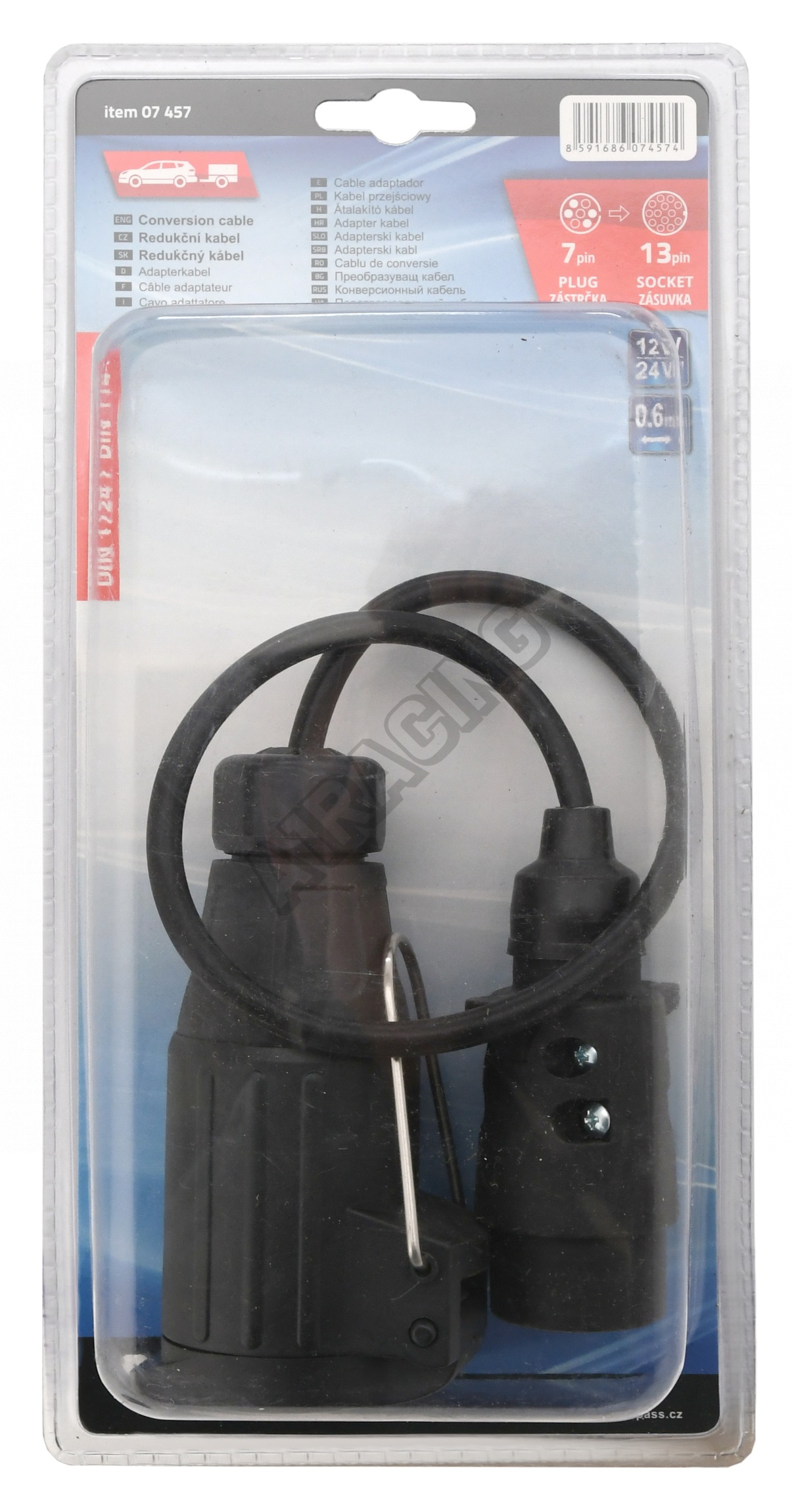 Určeno pro vozidlo se 7-ti pólovou zásuvkou (dle DIN 1724) a přívěs s 13-mi pólovou zástrčkou (dle DIN 11446).