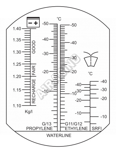 Refraktometrem je možné určit stupeň nabití akumulátoru, teplotu tuhnutí chladících kapalin na bázi propylenglykolu nebo etylalkoholu a taktéž teplotu tuhnutí kapalin do ostřikovačů.