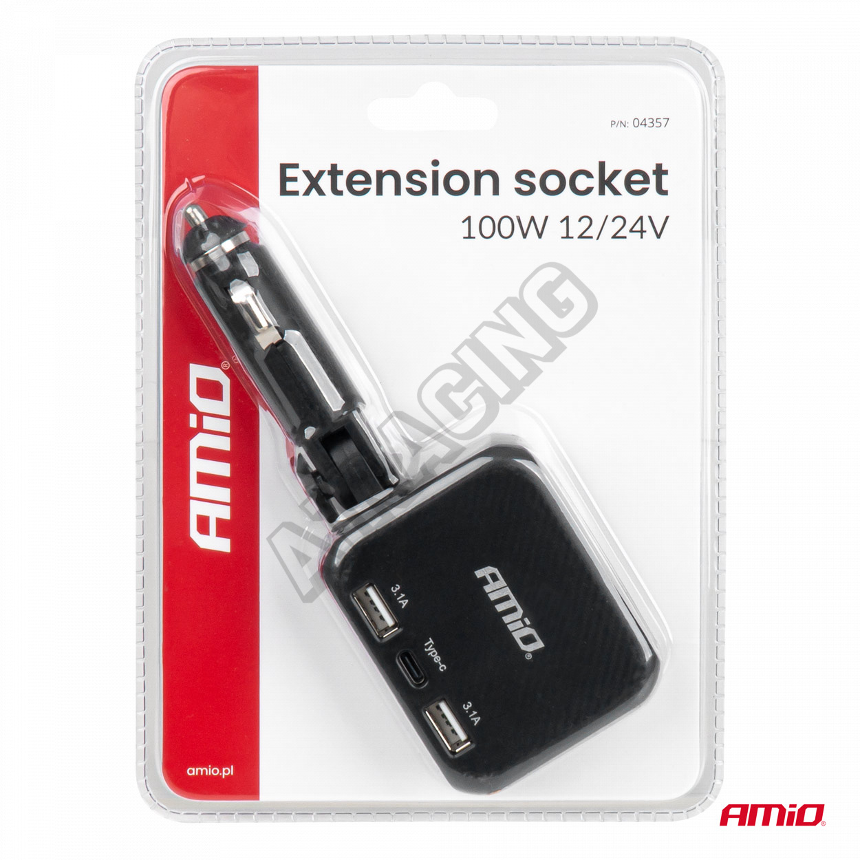 Rozdělovač zásuvky zapalovače s nabíječkou 2x USB-A 1x USB-C 12V 24V 100W 180° AMIO-043576.63 EUR