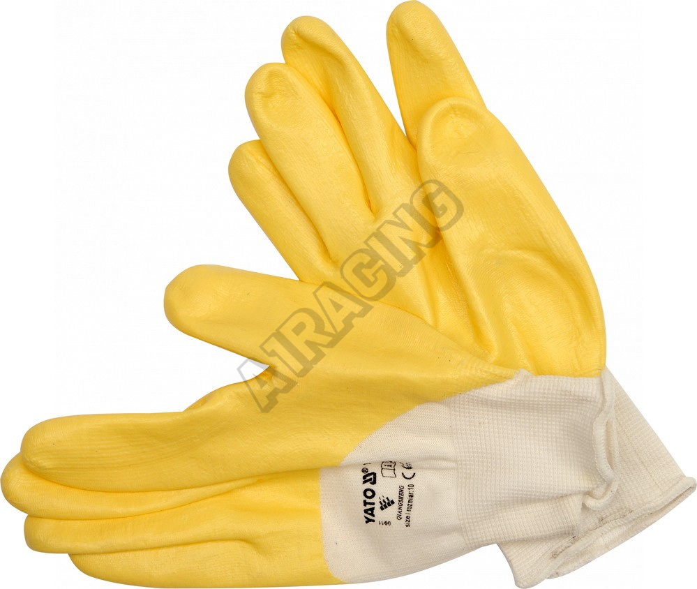 Rukavice jsou zhotoveny z nylonu, který je na spodní straně a na čelní straně prstů potažen nitrilem. Zakončení rukavic lemováním.