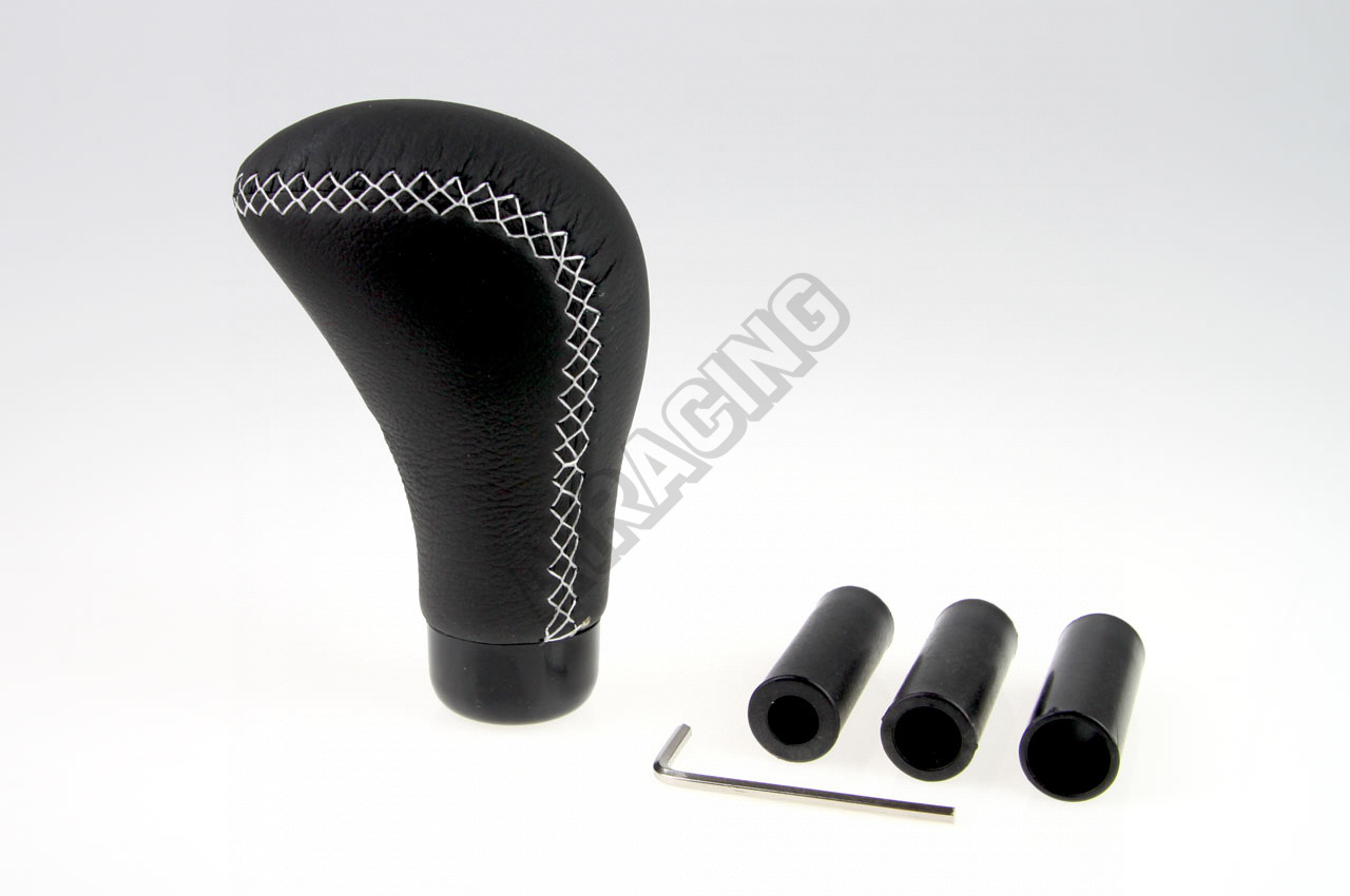 Rukojeť řadící páky černá/bílé obšití Provedení kůže.Součástí balení jsou plastové redukce, imbus k