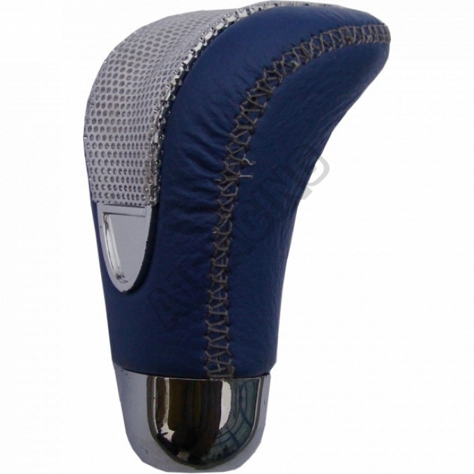 Rukojeť řadící páky modrá/chrom v kombinaci kůže hliník