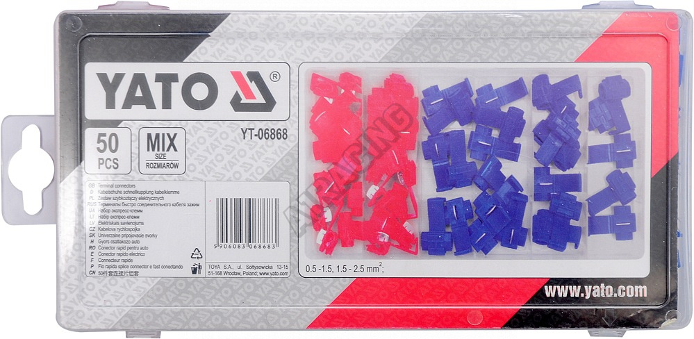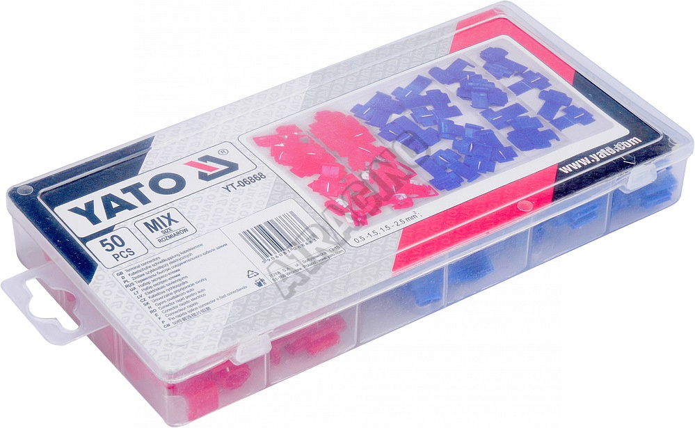 Sada 50 ks kabelových rychlospojek. Vše je přehledně uspořádáno v kompaktním plastovém kufříku.