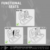 Můžeme bez problémů sklopit opěradla, abychom zvětšili prostor pro zavazadla.Potahy nemají výřezy na pásy a zadní opěrky hlavy kvůli určení pro různé modely aut. Je nutné samostatně provést potřebné otvory po důkladném přizpůsobení a montáži.