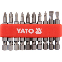Kvalitní bity Yato se systémem Non-Slip, kdy je hrot bitu vybaven žebrováním zabraňujícím sklouznutí šroubu a zvyšujícím přenos kroutícího momentu.