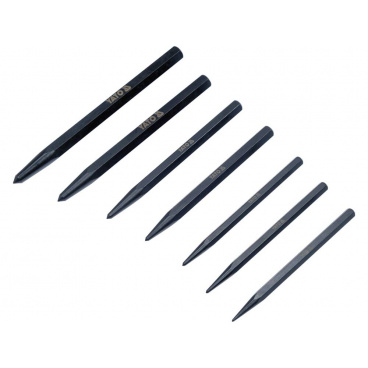 Sada důlčíků o délce 100 - 140 mm. Vyrobeno z oceli CrV 6150, povrch černěný. Technická data mater