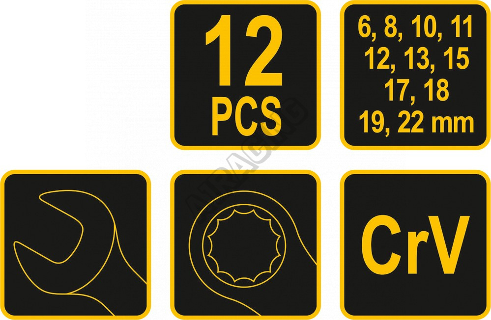 Sada klíčů očkoplochých 12 ks 6 - 22 mm CrV