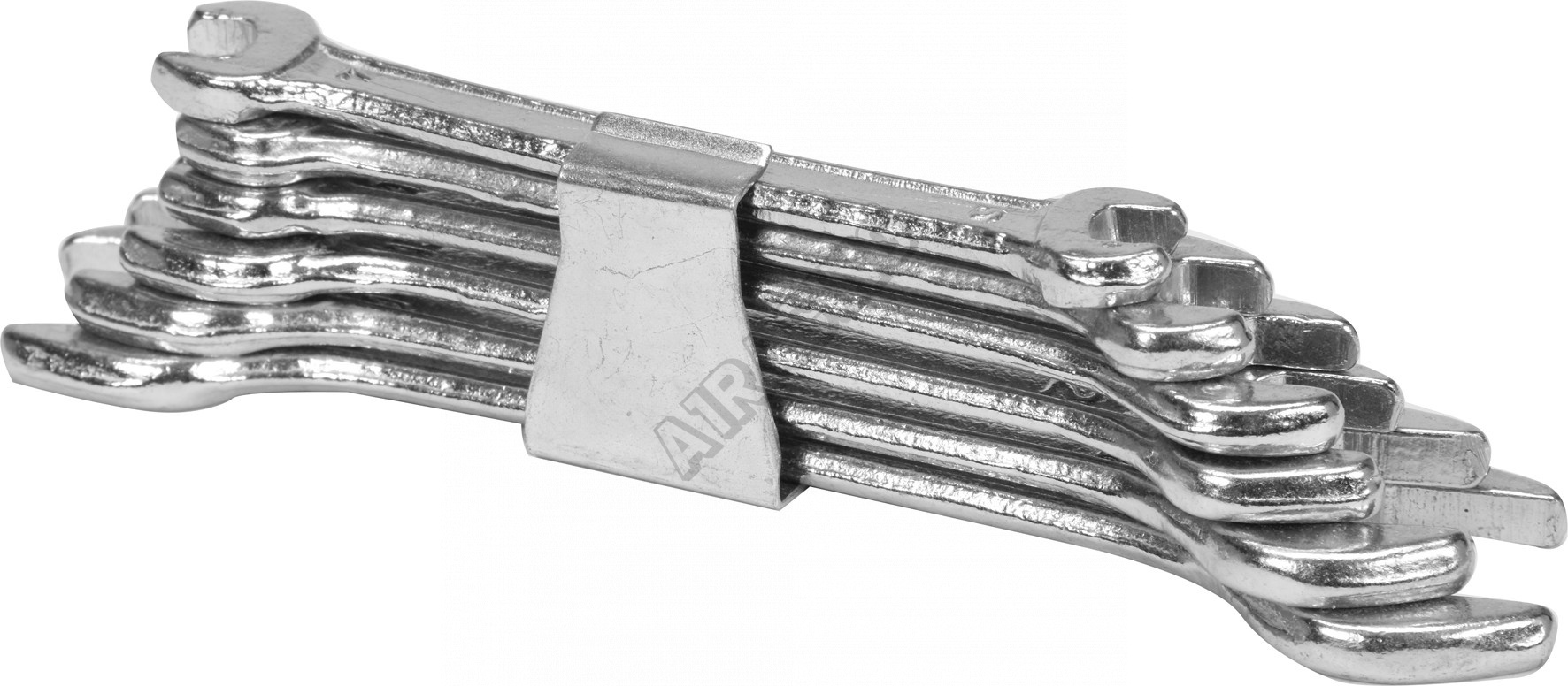 Sada klíčů s dvojitým otevřeným koncem 6 - 17 mm. Vyrobeno z uhlíkové oceli. Klíčové hlavy sklopené o 15 stupňů.