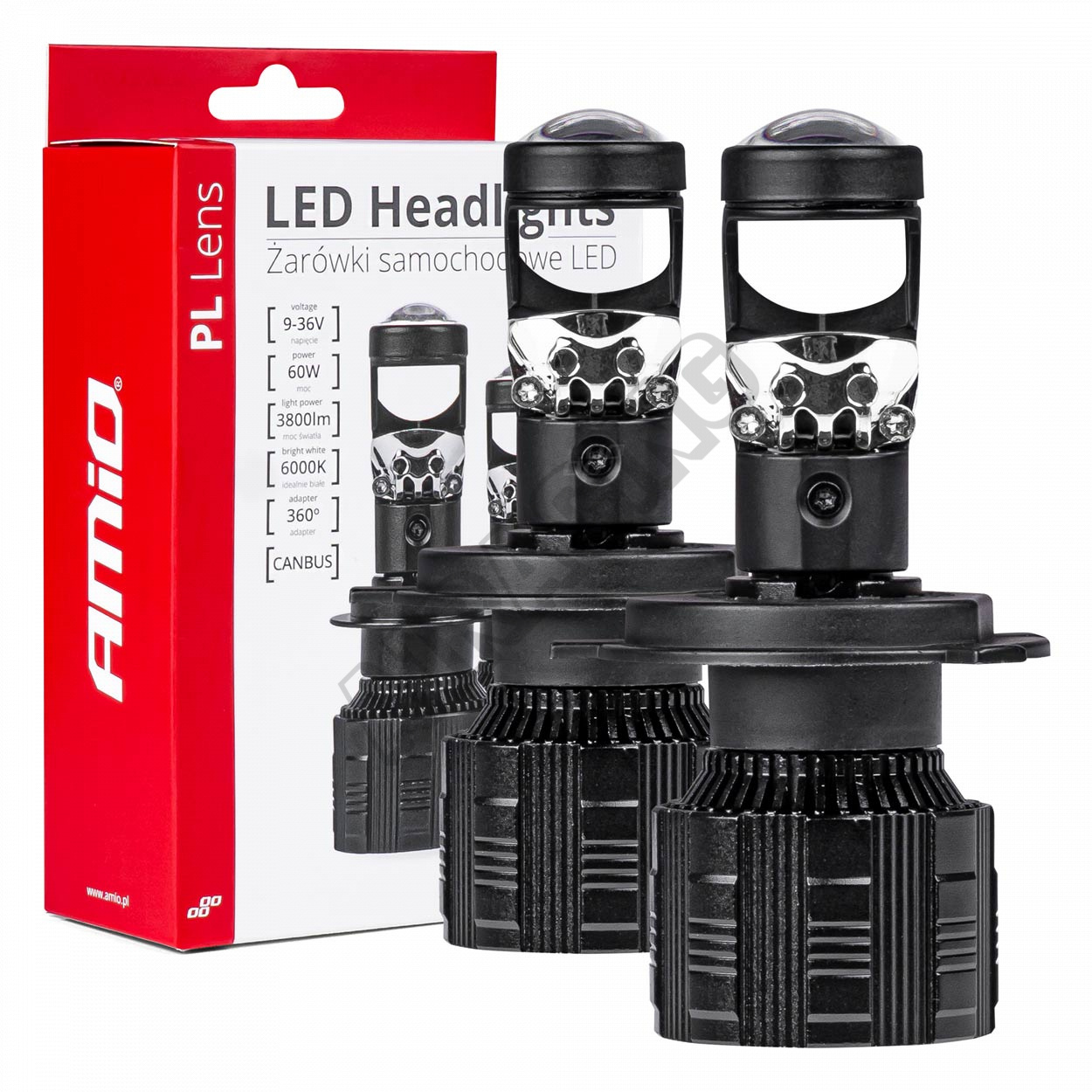 Diodová základna je nastavitelná, což umožňuje její přizpůsobení různým typům světlometů. Čočka projektoru a výkonné diody zajišťují téměř dokonalé rozložení světla v lampě bez čoček. Vestavěný EMC systém navíc eliminuje rušení FM/CB rádia. Pod diodami je měděná podložka, která zabraňuje UV a IR emisím a chrání reflektor a reflektor před spálením.