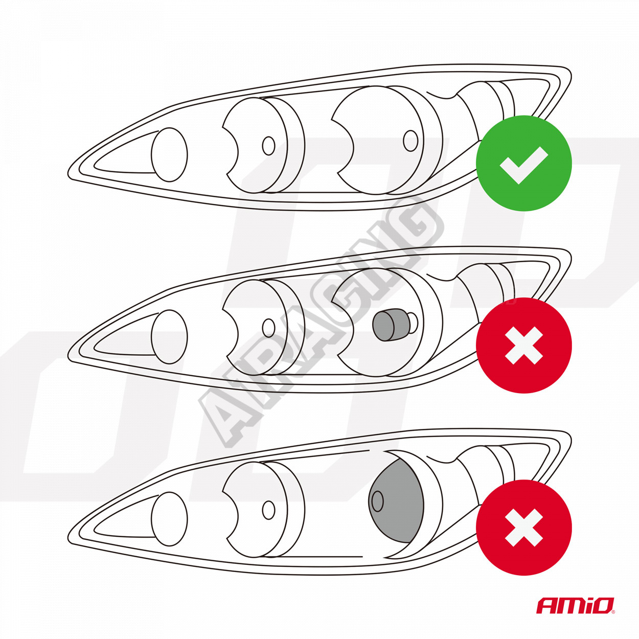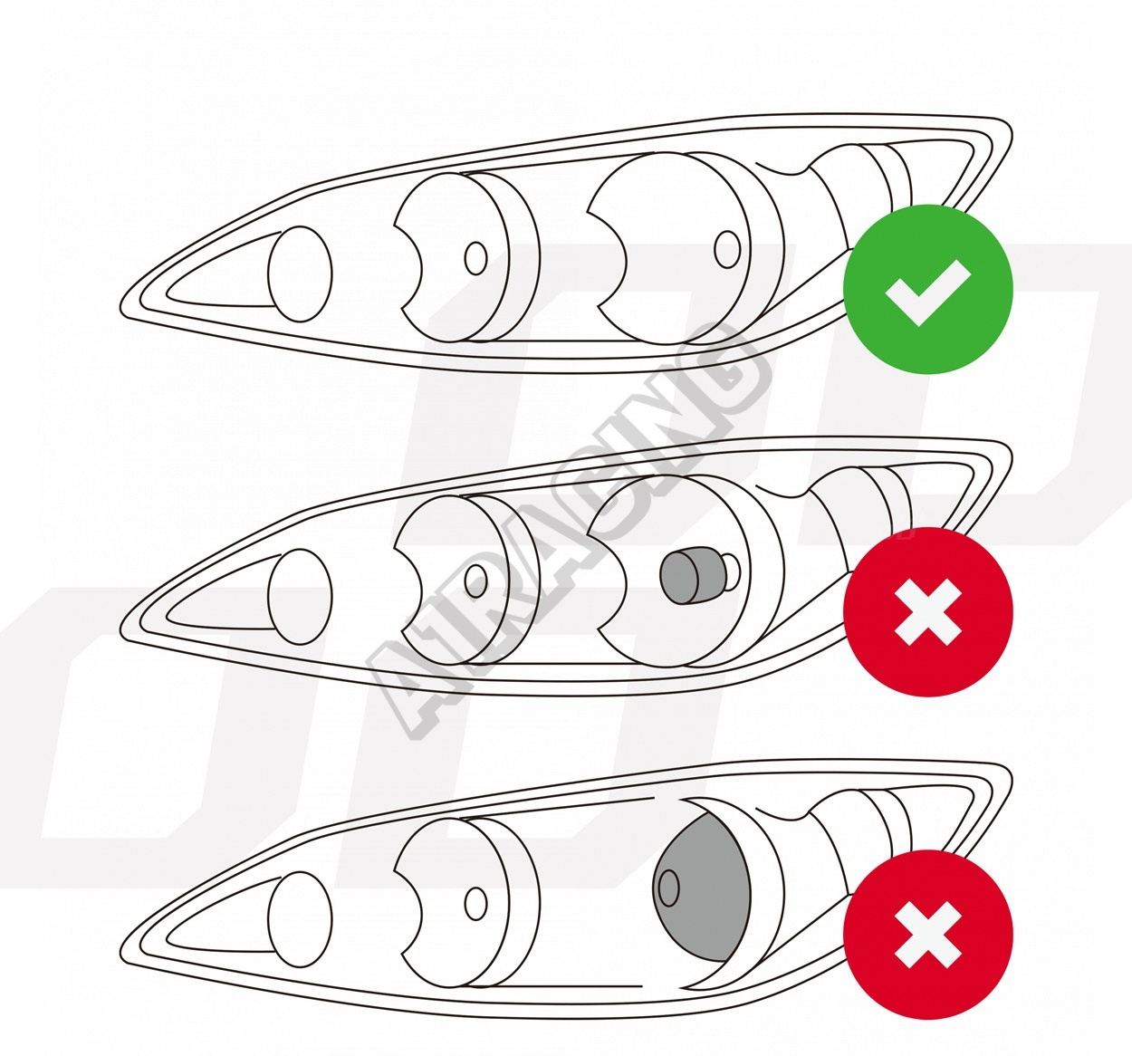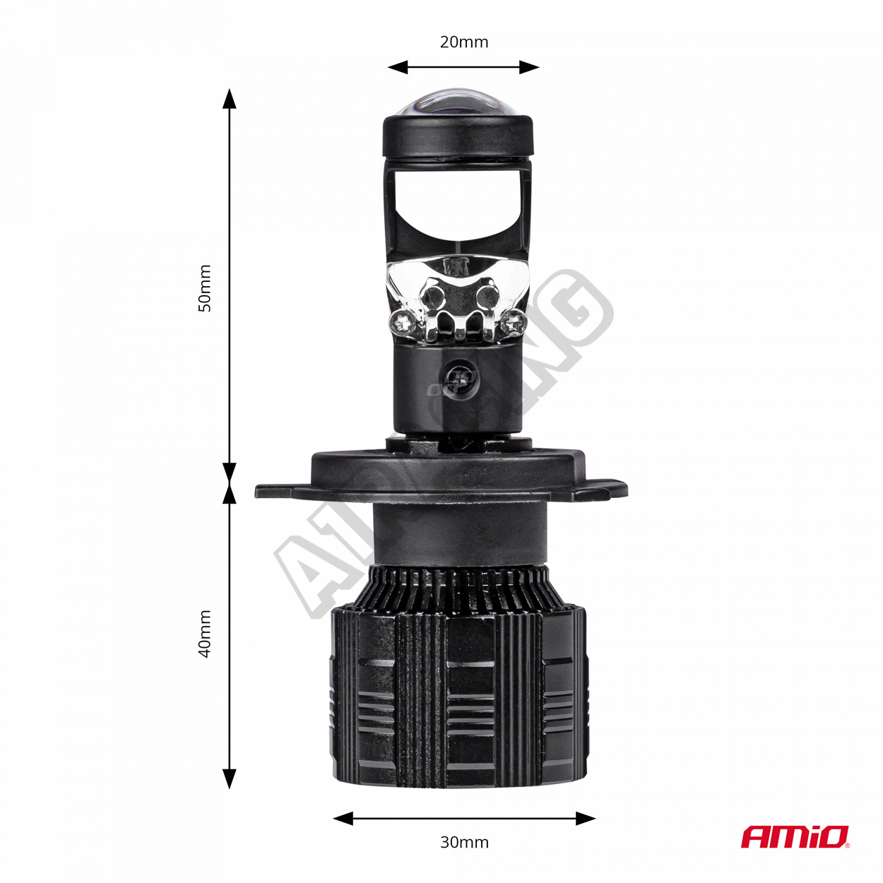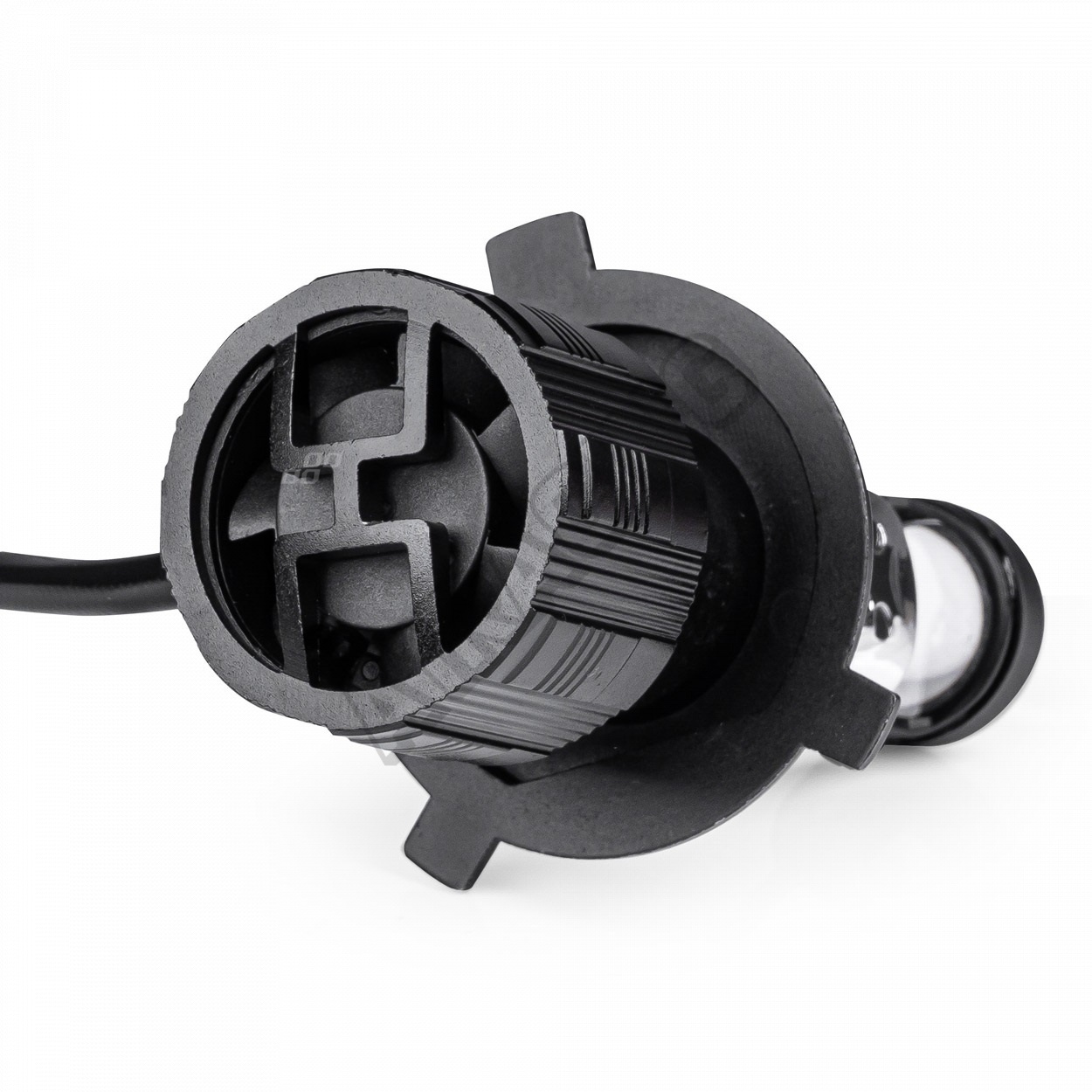 Diodová základna je nastavitelná, což umožňuje její přizpůsobení různým typům světlometů. Čočka projektoru a výkonné diody zajišťují téměř dokonalé rozložení světla v lampě bez čoček. Vestavěný EMC systém navíc eliminuje rušení FM/CB rádia. Pod diodami je měděná podložka, která zabraňuje UV a IR emisím a chrání reflektor a reflektor před spálením.