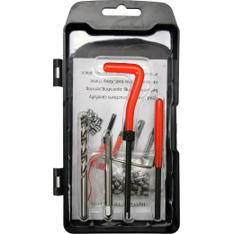 Dále lze závitové vložky využít pro výztuhu závitů v materiálech s nízkou pevností ve střihu např. alu nebo hořčíkové slitiny. Obsah je vrták, závitník, zavádeč, vyrážecí trn a závitové vložky z nerezové oceli.