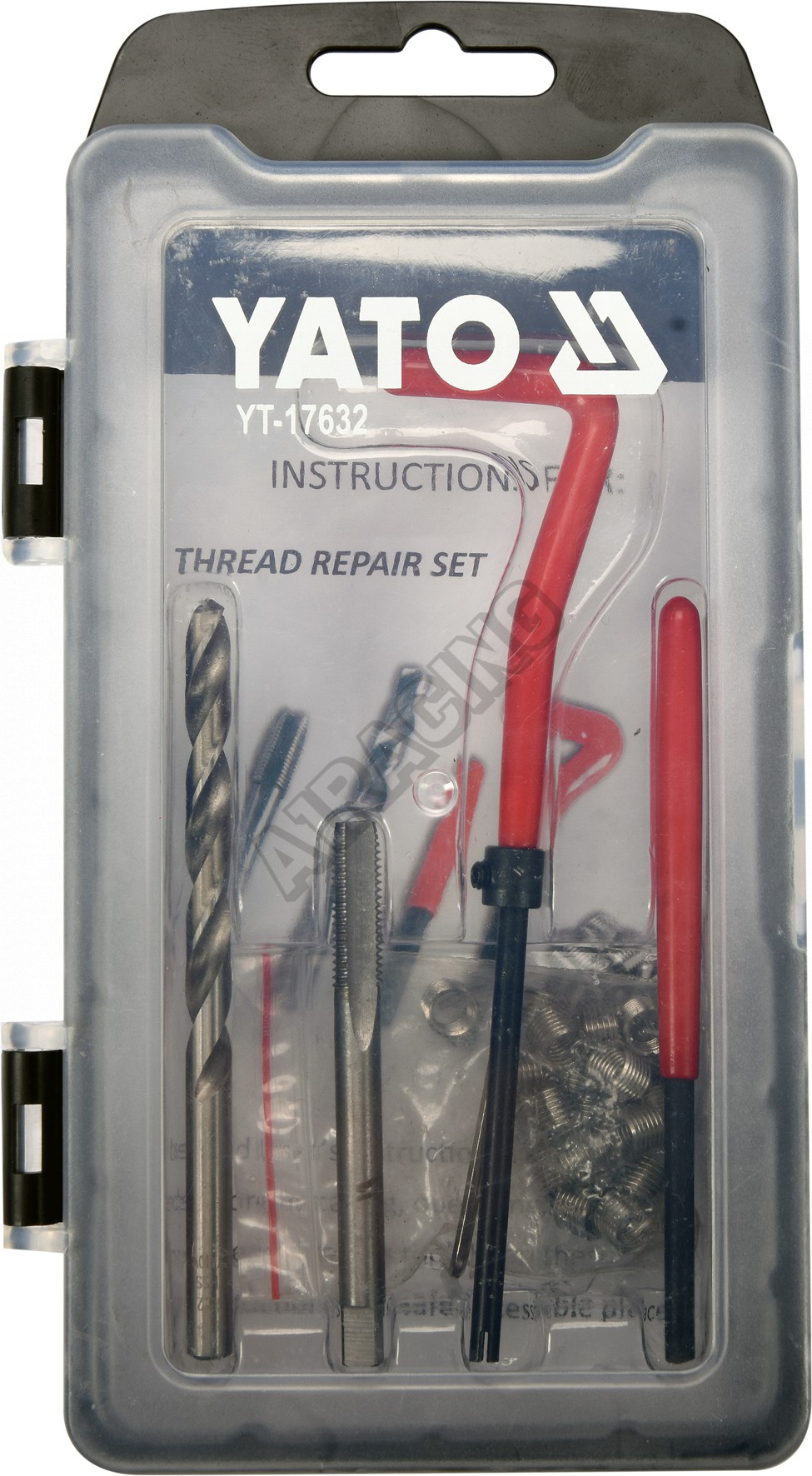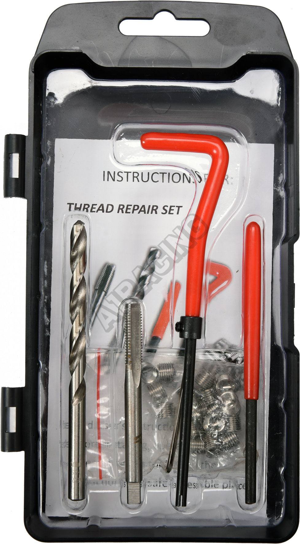 Dále lze závitové vložky využít pro výztuhu závitů v materiálech s nízkou pevností ve střihu např. alu nebo hořčíkové slitiny. Obsah je vrták, závitník, zavádeč, vyrážecí trn a závitové vložky z nerezové oceli.