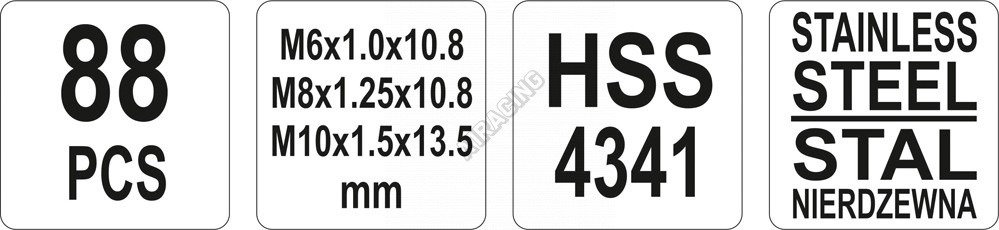 Opravná sada poškozených metrických závitů je určena všude tam, kde při poškození závitu nelze použít šroub jiného rozměru, než byl původní. Dále lze závitové vložky využít pro výztuhu závitů v materiálech s nízkou pevností ve střihu například alu nebo hořčíkové slitiny. Obsahem sady pro každý druh závitu je vrták, závitník, zavádeč, vyrážecí trn a závitové vložky z nerezové oceli. Vložky M6 – M10 jsou v balení 25 kusů..