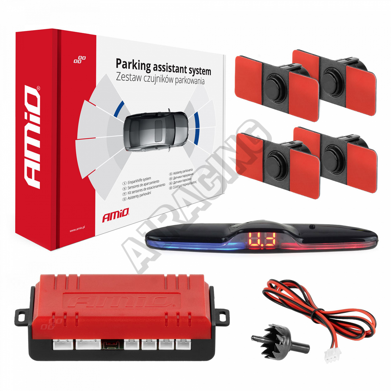 Ukazuje vzdálenost od překážky s přesností na desetiny metru. Vestavěný reproduktor (bzučák) varující před překážkou má 3 režimy hlasitosti. (výskoky, nízký, ztlumený)