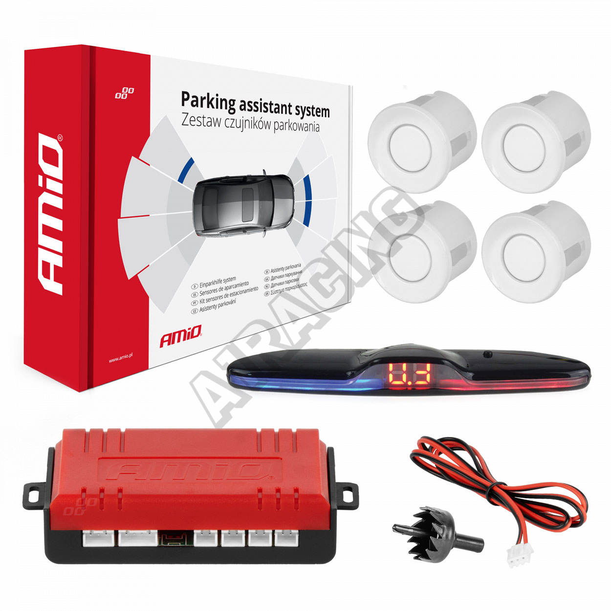 Sada parkovacích senzorů couvací senzory MAX LED 4 senzory bílé