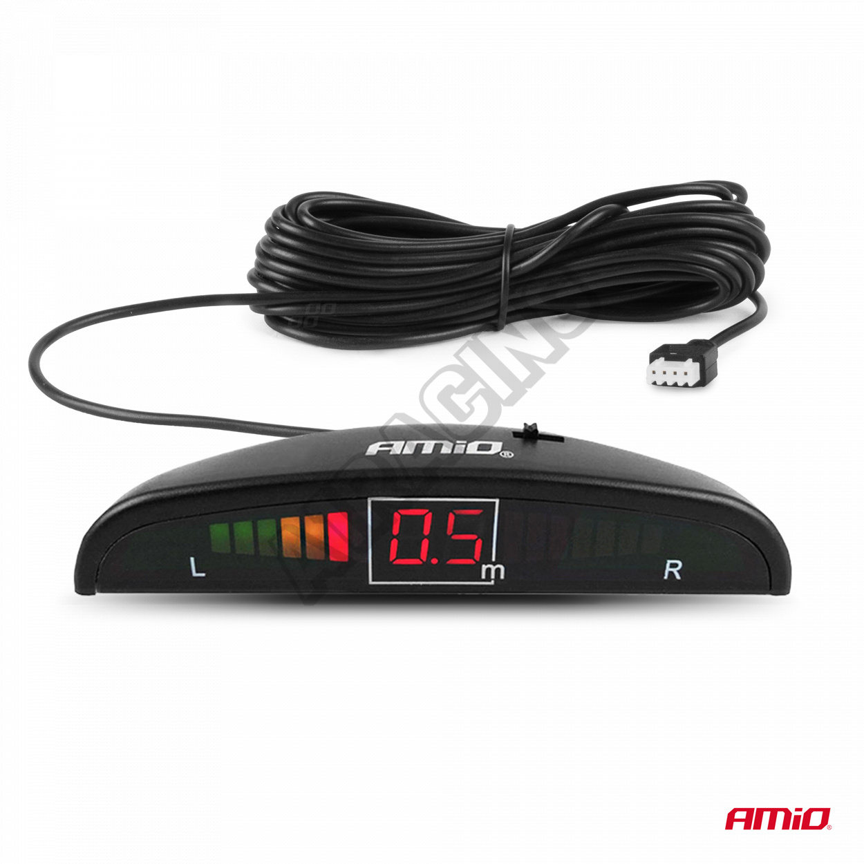 LED displej ukazuje vzdálenost od překážky s přesností na desetiny metru. Má také vestavěný reproduktor (bzučák), který varuje s možností úplného ztišení pomocí přepínače na krytu.
