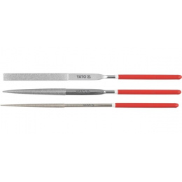 Sada 3 ks diamantových pilníků se zrnitostí 150. Celková délka jednotlivých pilníků 140 mm z nichž