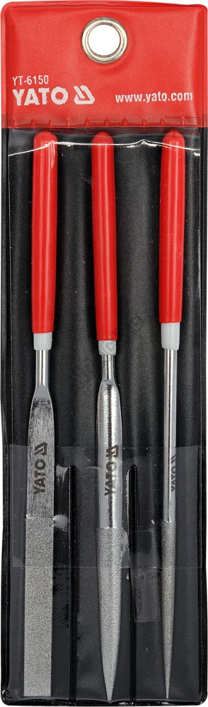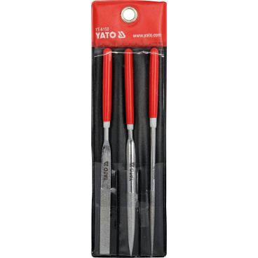Sada 3 ks diamantových pilníků se zrnitostí 150. Celková délka jednotlivých pilníků 160 mm z nichž