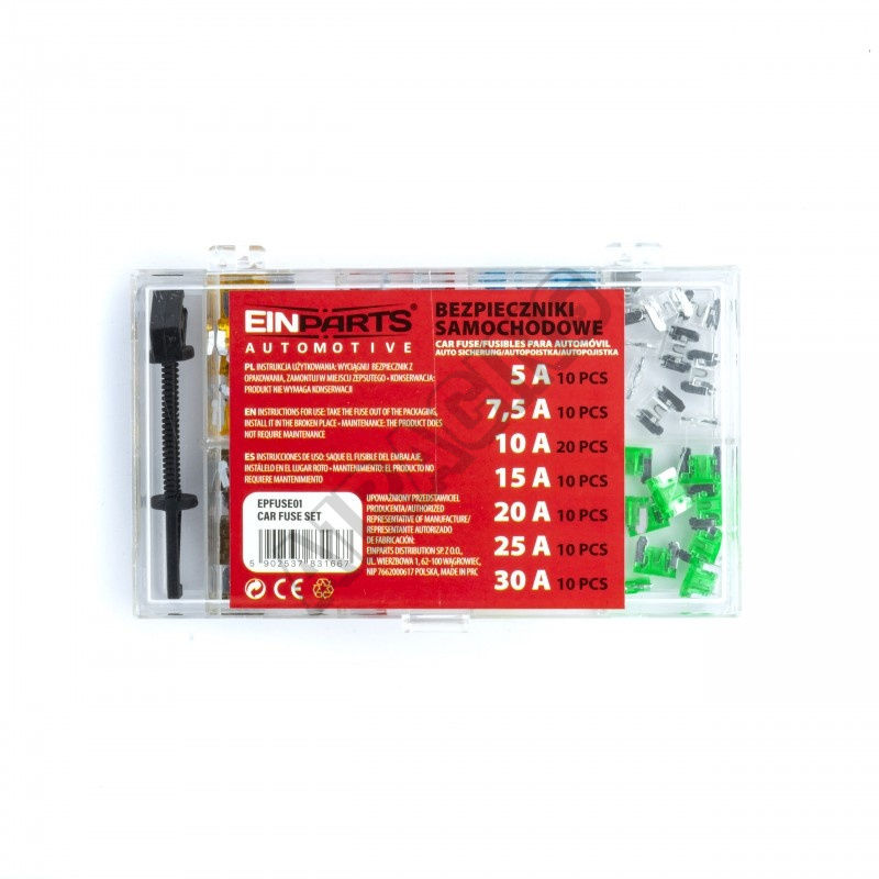 Sada pojistek MINI 80 ks včetně vytahovacího segmentu 5A, 7,5A, 10A, 15A, 20A, 25A, 30A