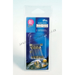 Sada pojistek - skleněné, 6ks 1x2A, 1x10A, 1x15A, 1x5A, 1x10A, 1x25.