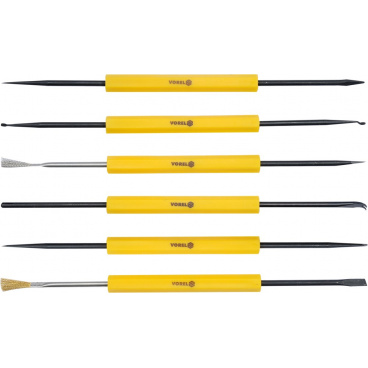 • Obsahuje jemné hroty, špachtličky, páčidélka, nerezový a bronzový štěteček