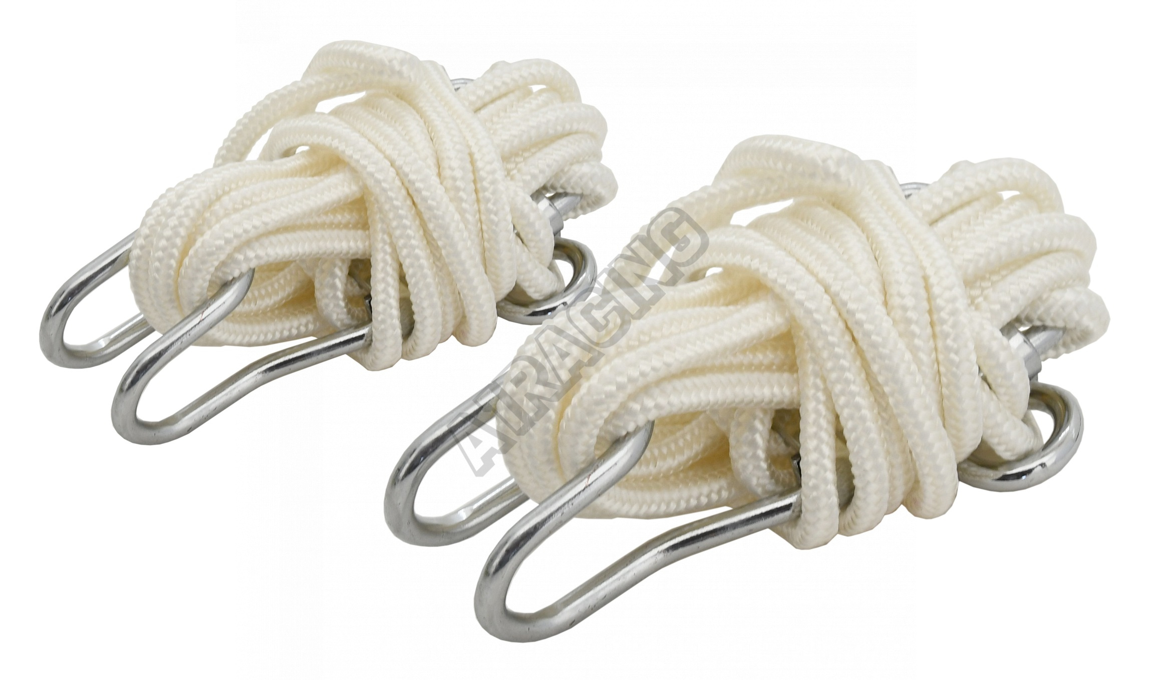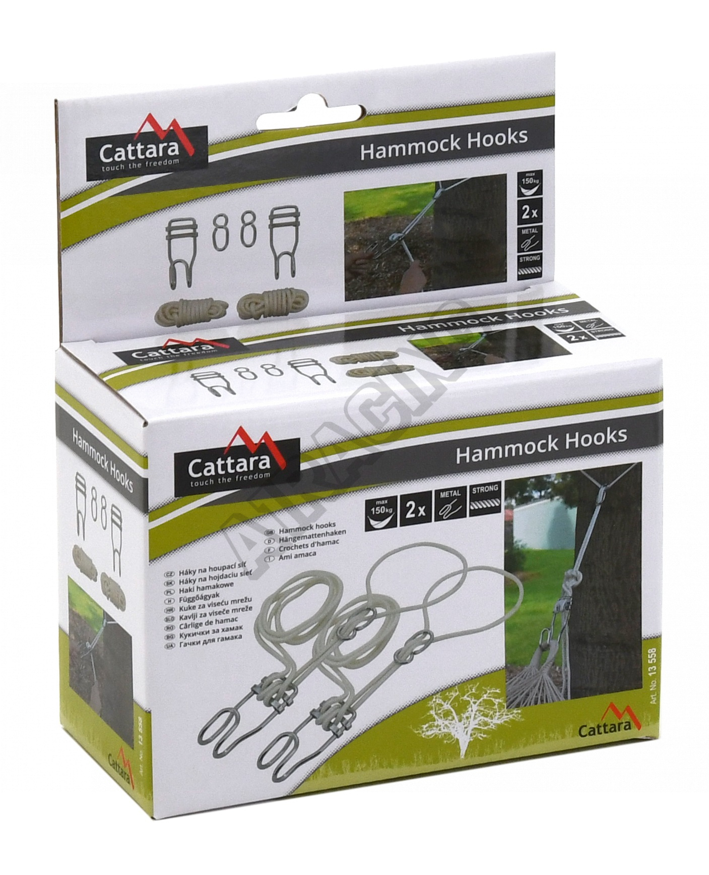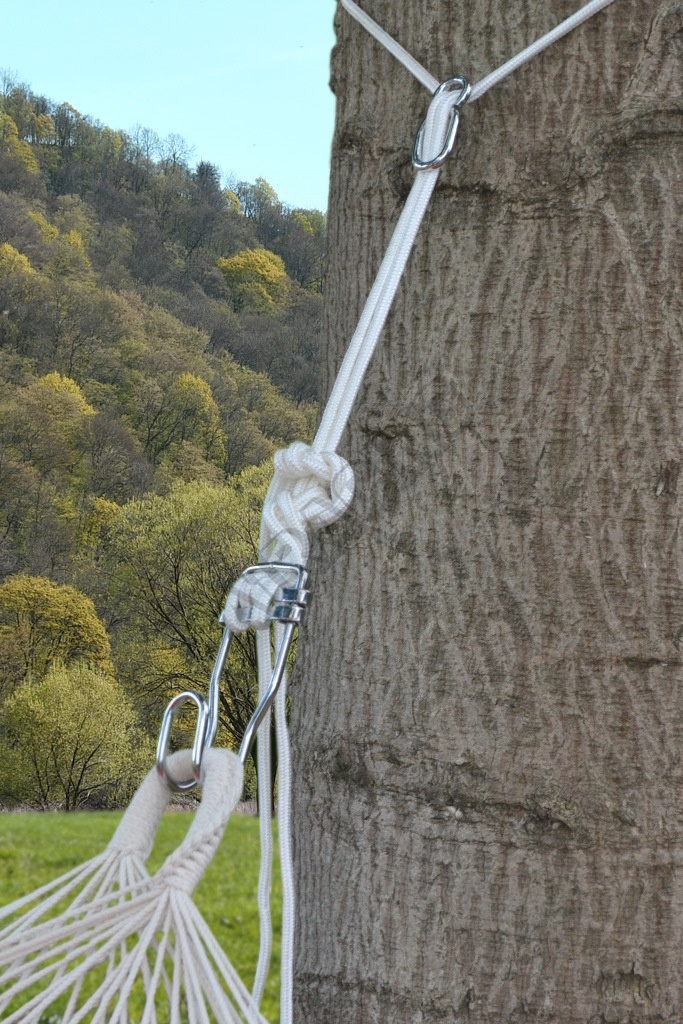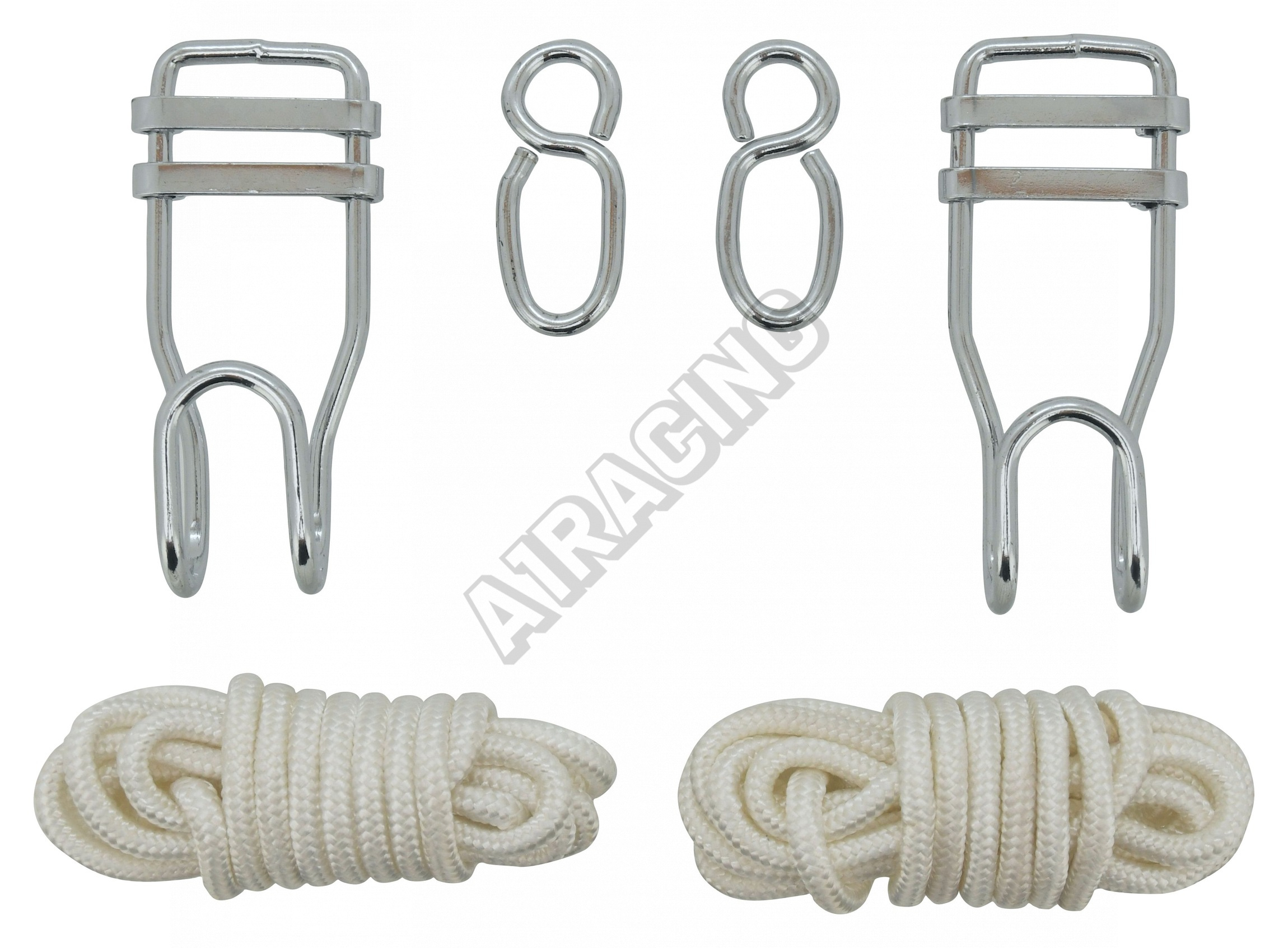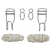 Sada pro zavěšení houpací sítě mezi dva stromy. Složení párem kovových háků kompletovaných se silným