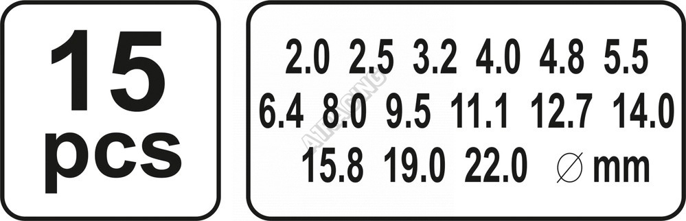 • Děrovače sada 15 kusů YATO průměr 2 - 22 mm