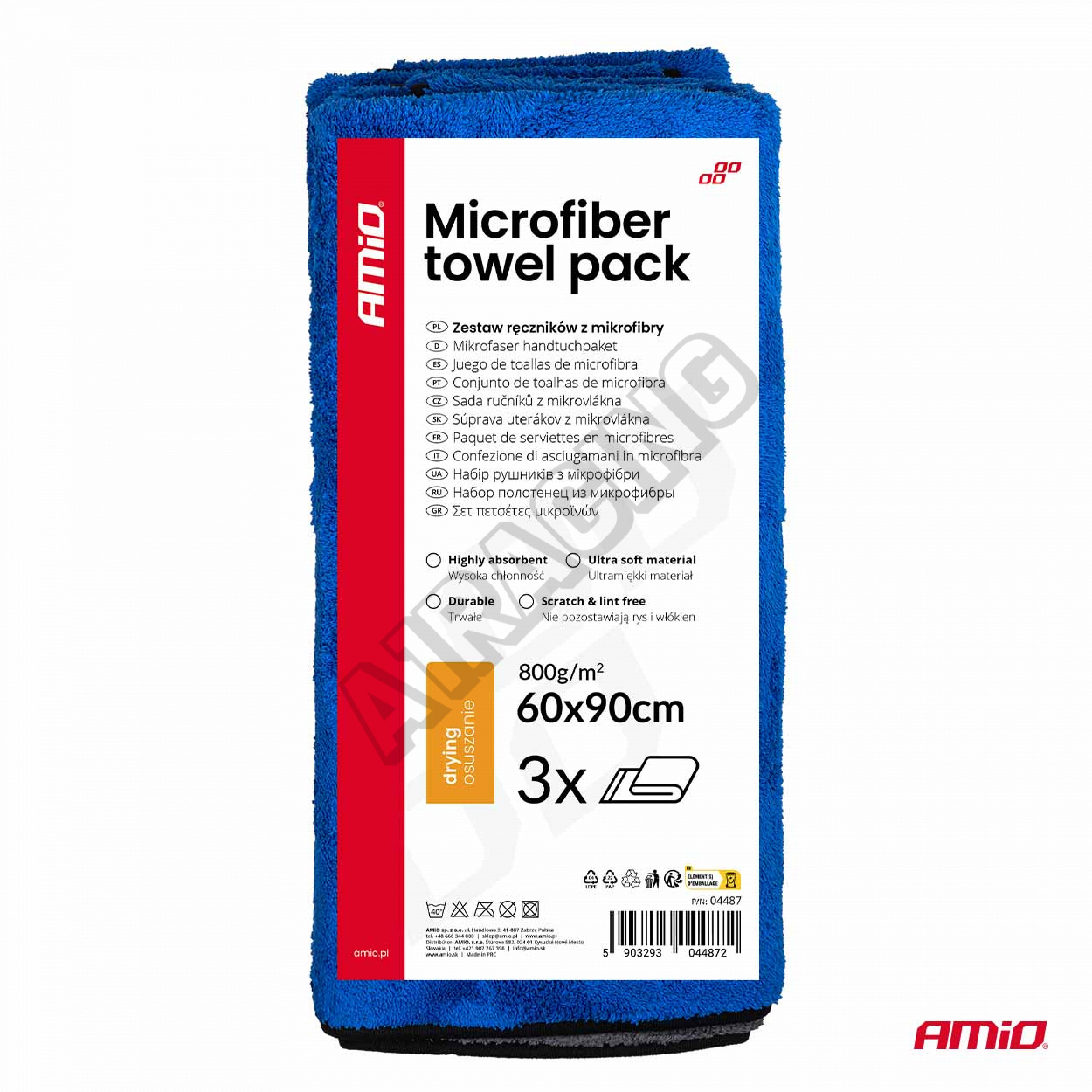Sada ručníků na sušení auta 800gsm 60x90cm 3ks. AMIO-04487