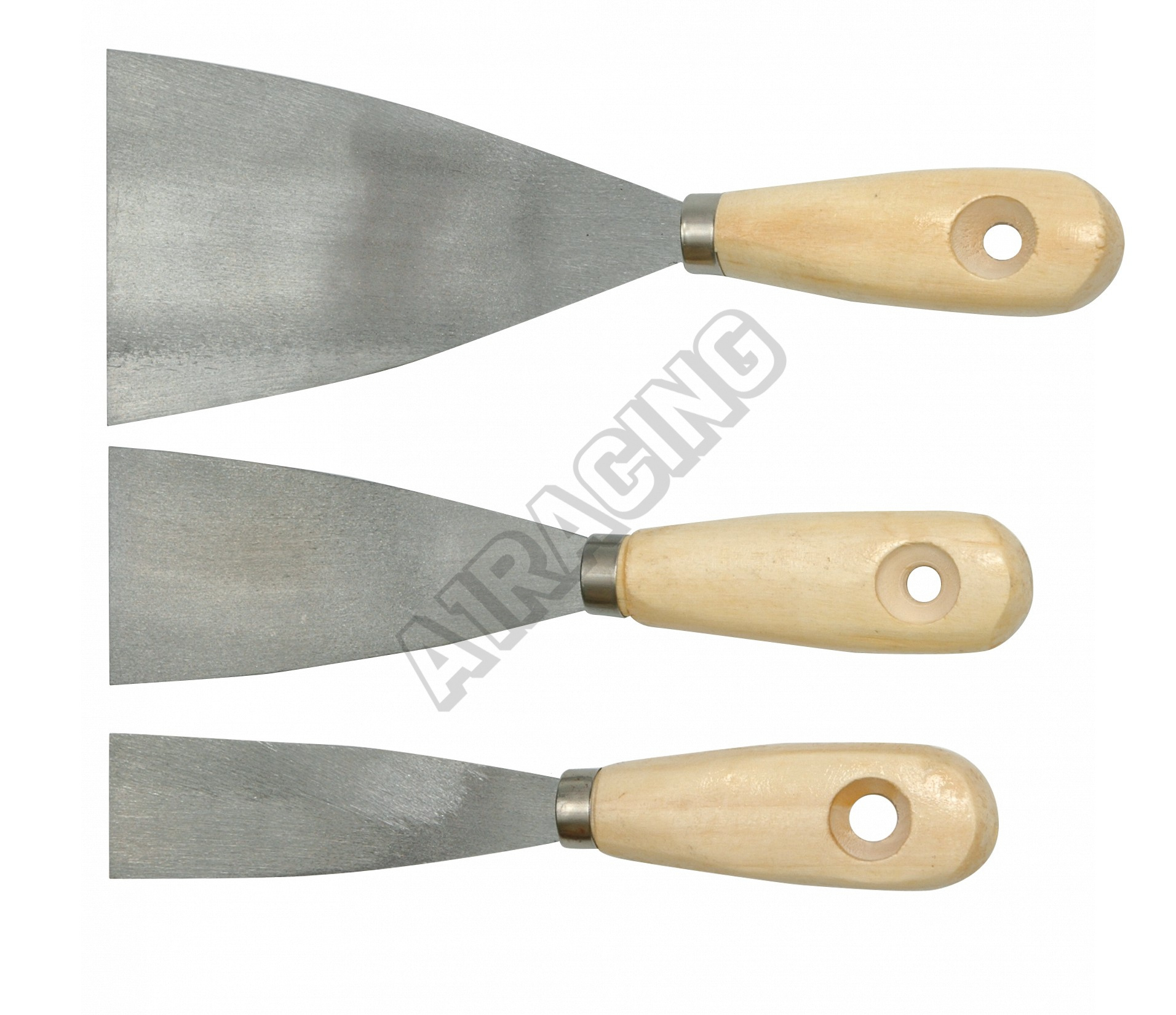 Sada špachtlí (30 / 50 / 80 mm) z nerezové oceli s dřevěnou rukojetí.