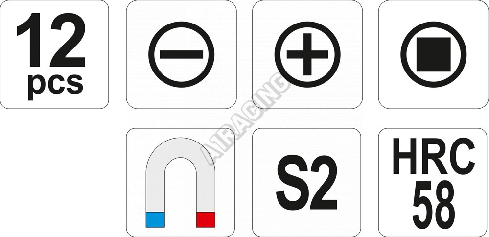 Sada šroubováků 12ks, - 3-8mm, + PH0-PH3, SQ1, SQ2