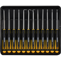 Sada 12 ks šroubováků a háků určených pro jemnou mechaniku a demontáž drobných součástí zařízení.