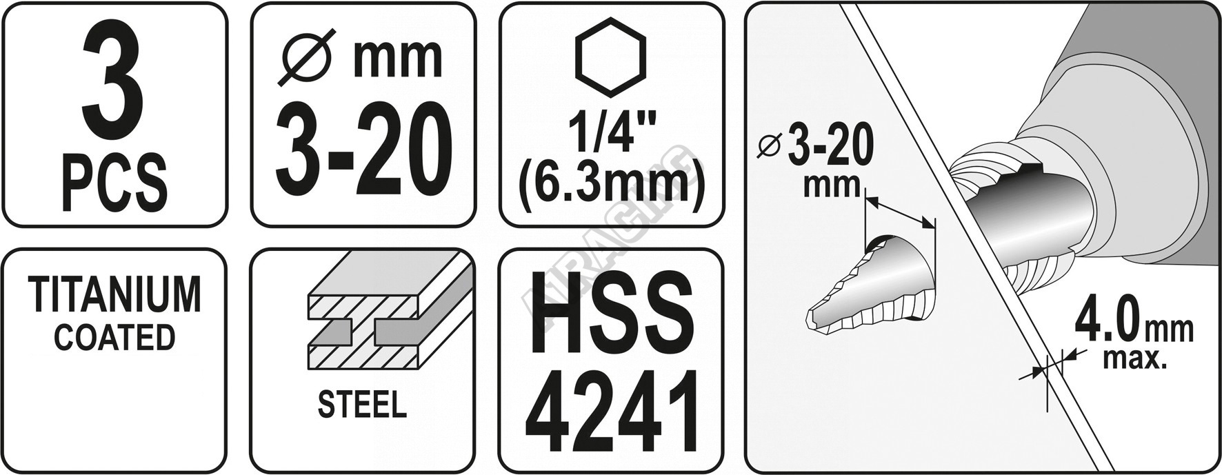 Sada stupňovitých kuželových vrtáků 3-20mm10.74 EUR