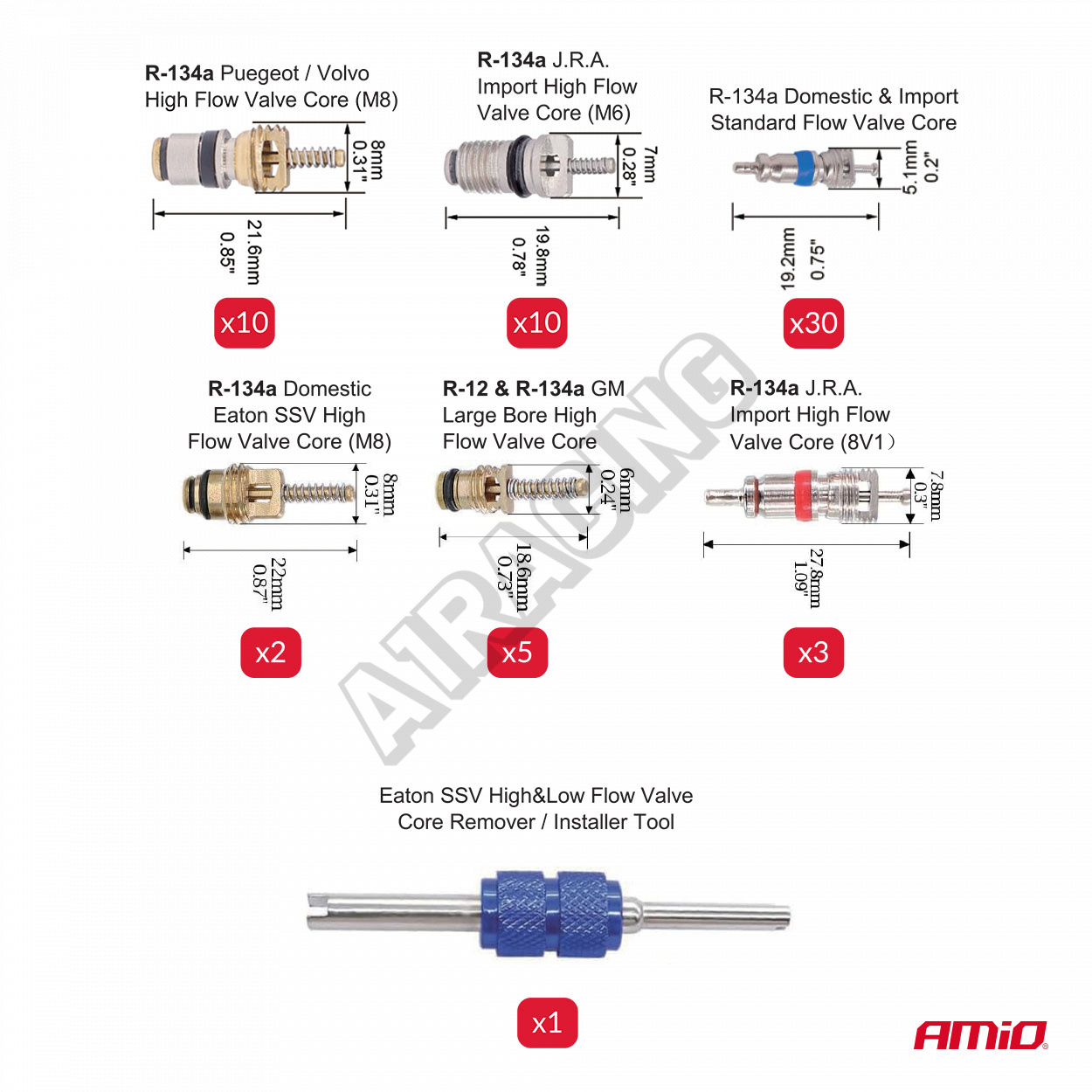 Sada ventilků pro klimatizaci ventily klimatizace 61 ks. AMIO-04446
