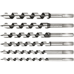 Sada 6 ks vrtáku do dřev. Vrtáky délky 230 mm jsou zhotoveny z uhlíkaté HCS oceli. Sada je uložena v