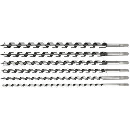 Sada 6 ks vrtáku do dřev. Vrtáky délky 460 mm jsou zhotoveny z uhlíkaté HCS oceli. Sada je uložena v