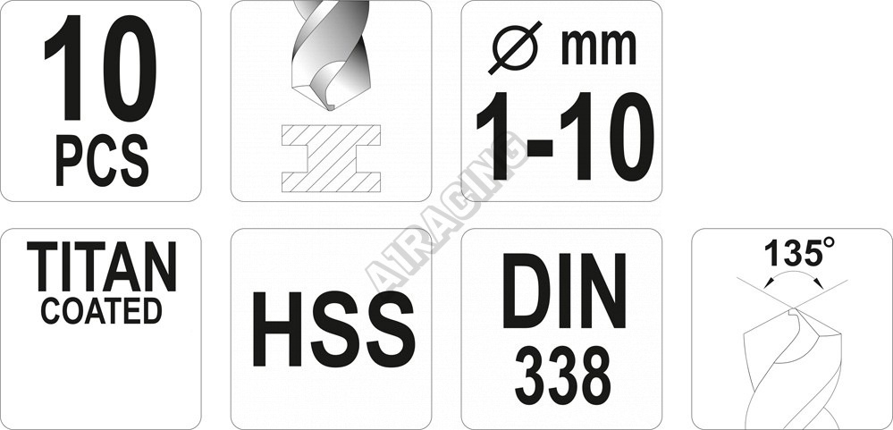 Sada vrtáků do železa HSS-TiN 10ks 1-10mm